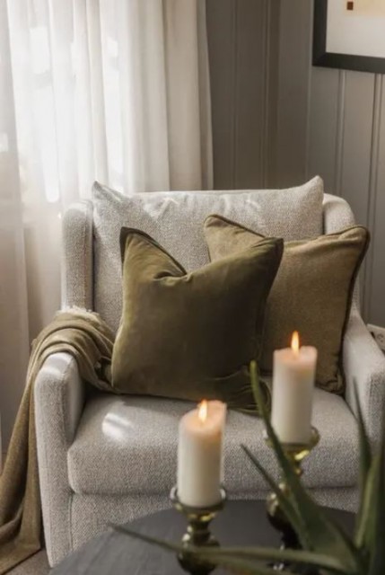 Ullpute i en flott grønnfarge med fiskebensvevet struktur og kant av grønn bomullsfløyel.